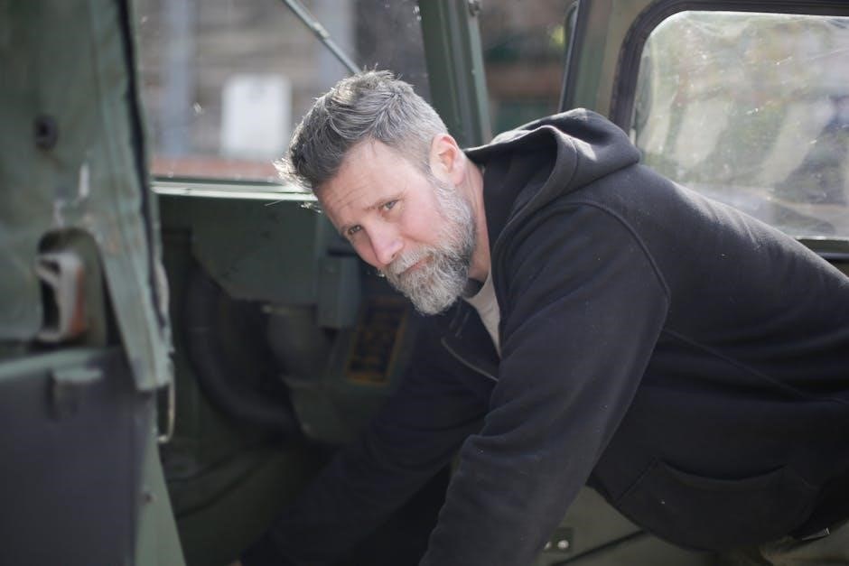 Common locations include under the seat, inside the glove compartment, or on the vehicle’s steering column. Carefully note the complete model number, as even slight variations can indicate different manual requirements. This number is crucial for ensuring you download a manual tailored to your specific vehicle, guaranteeing accurate repair and maintenance procedures.