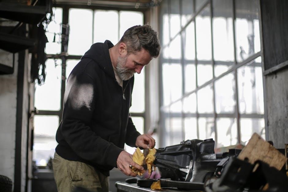 Torque specifications, detailed in the PDF, must be strictly adhered to when tightening fasteners. Using a torque wrench prevents over or under-tightening. Furthermore, wear appropriate personal protective equipment (PPE), as outlined in the manual, to safeguard against injury during the repair process.