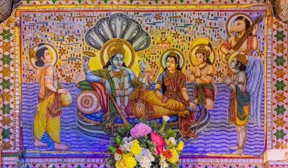 The PDF details how Lakshmi‚ the goddess of prosperity and fortune‚ is eternally connected to Vishnu‚ manifesting alongside him in his various incarnations. Their story emphasizes the importance of devotion‚ auspiciousness‚ and the harmonious balance of masculine and feminine energies.