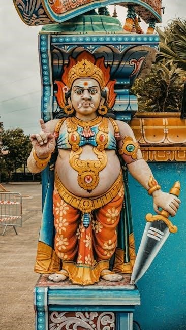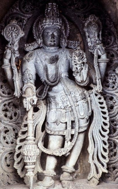 The Vishnu Purana’s narratives have profoundly influenced artistic expression across centuries‚ inspiring sculptures‚ paintings‚ and temple architecture dedicated to Vishnu and his avatars. The story of Prahlada‚ for instance‚ is a recurring theme in visual arts‚ depicting divine intervention and unwavering faith.